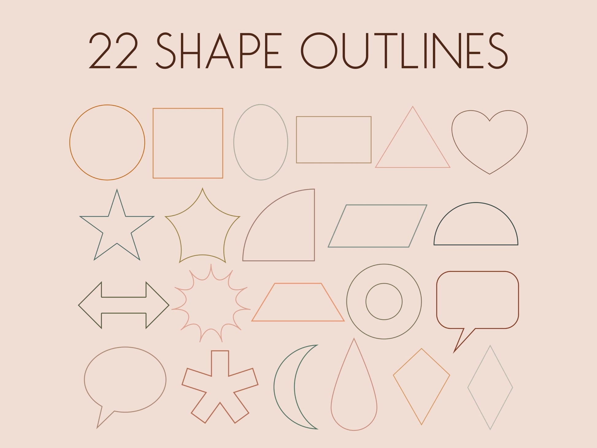 This brushset is complete with 22 basic shapes as outlines as well as filled in objects. That makes 44 brushes in total! These easy-to-us stamps allow you to add shapes to your design in seconds, without having to draw them out every single time.