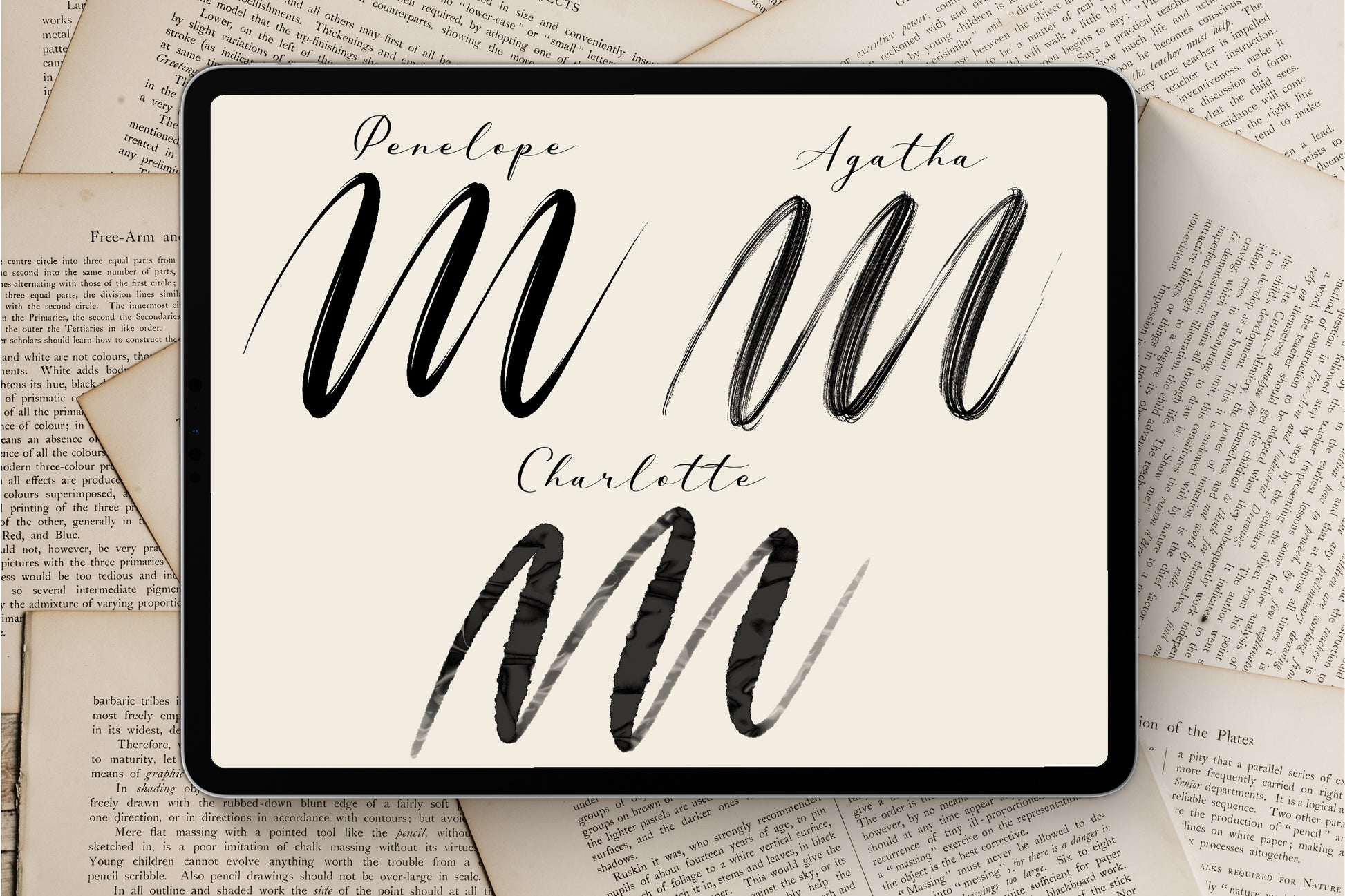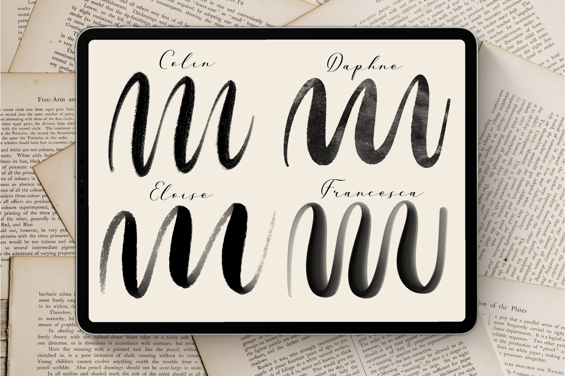 But even if you're not a historical romance fan, these brushes are perfect for beautiful hand lettering and calligraphy, and have lots of texture that gives them a fun, handmade look. With these brushes, you can turn the simplest words and phrases into masterpieces in seconds!