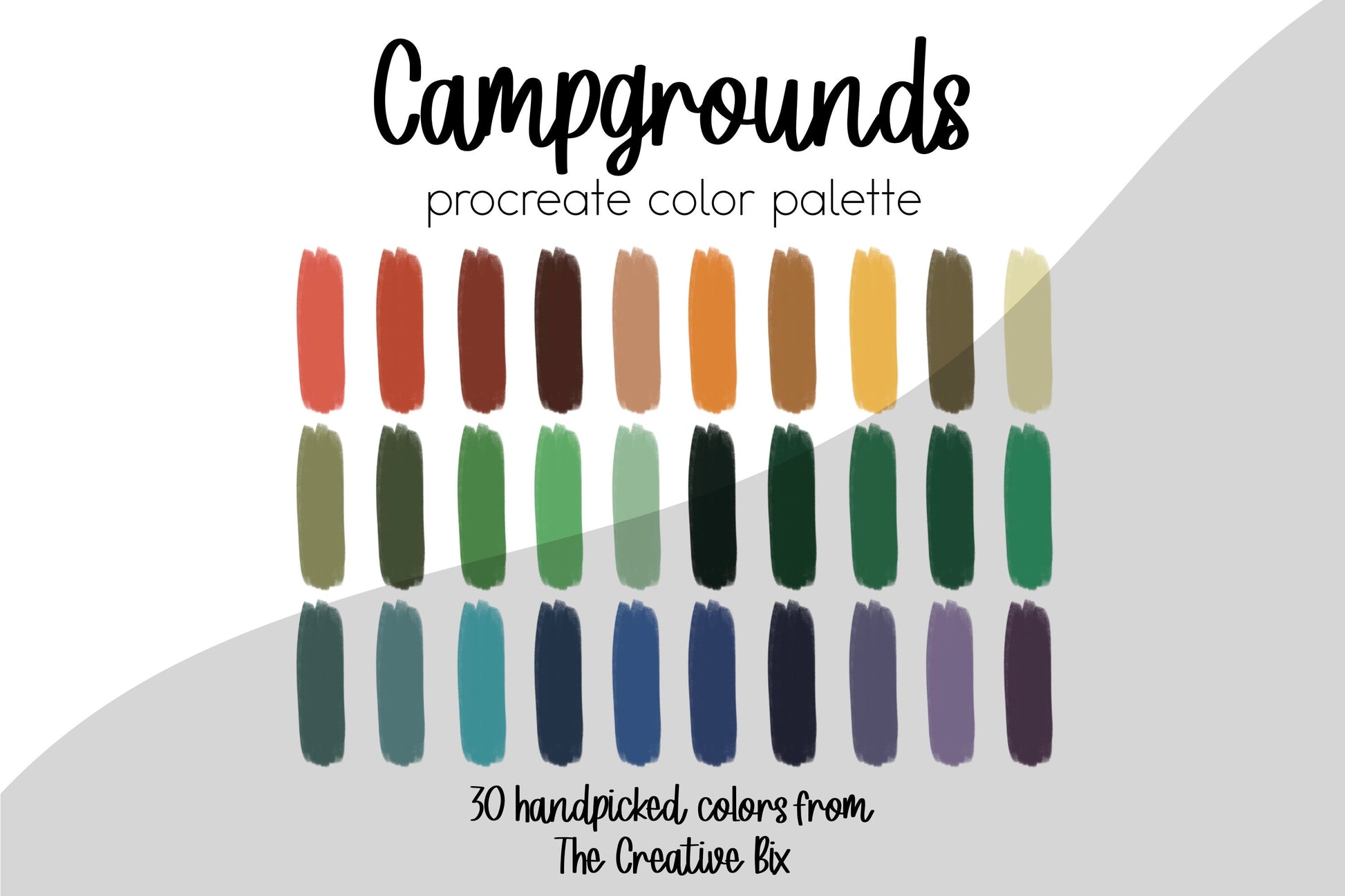 CAMPGROUNDS Color Palette for PROCREATE (only works in the app Procreate) Procreate palettes are perfect for keeping colors organized and ready to use whenever you need them! So I have handpicked the colors in this color palette just for you! This way you can dedicate more time to creating stunning logos, art, and designs, and less time deciding which colors you want to use!